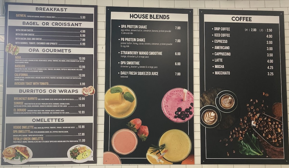 Opa Cafe Menu